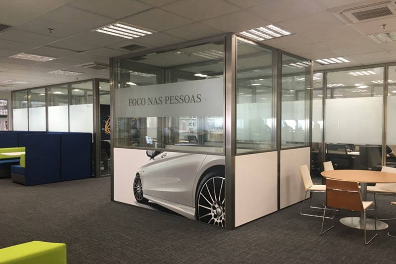 Painéis cegos, duplos em aglomerado de 15 mm, painéis em vidro únicos ou duplos e painéis mistos se compõem com portas em folhas em aglomerado maciço, batentes, ferragens e uma enorme quantidade de acessórios (comportando, inclusive, a passagem de cabeamento), resultando num conjunto harmonioso e funcional, cuja aplicação promove a construção de salas e espaços corporativos, que solucionam as mais diversas necessidades dos clientes.