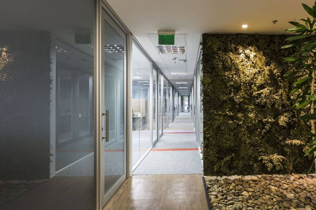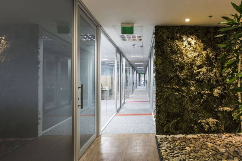 Estruturada em perfis alumínio de design exclusivo que também utilizam material reciclado em sua composição - o que contribui com os créditos de uso de material reciclado exigidos pelo LEED para a tipologia de escritórios – e podem receber os mais diversos acabamentos.